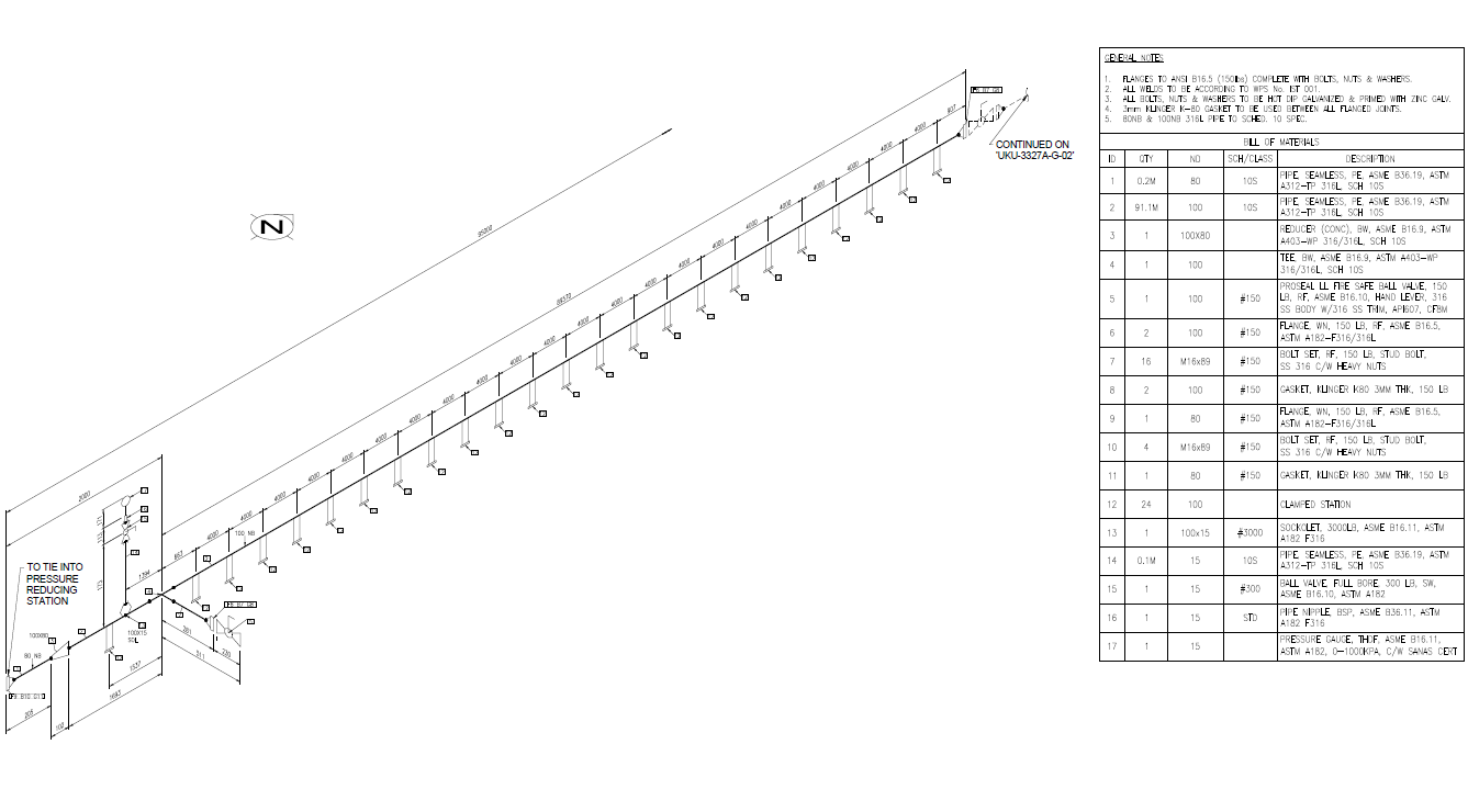 Our piping isometric drawings provide a complete, easy-to-read representation of piping systems, including dimensions, material take-offs, weld details and support details. These drawings enhance construction accuracy, minimise site modifications and ensure full alignment with stress analysis requirements.